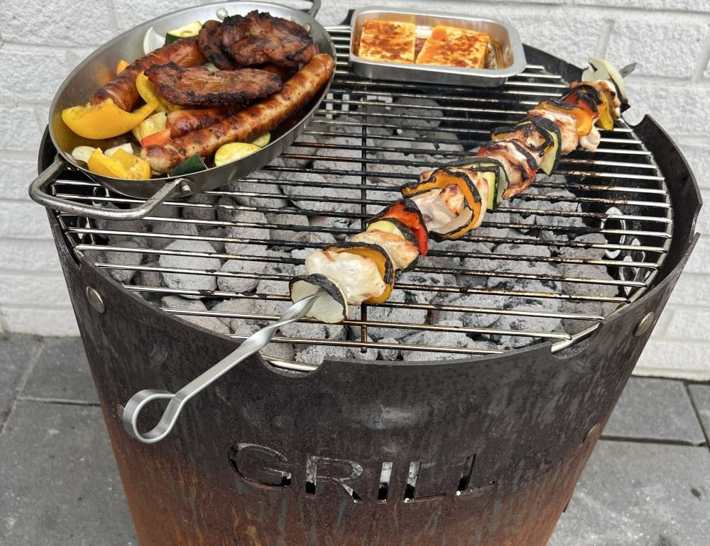 Feuer & Grill in einem: Mit aufliegendem Grillrost wird das Feuerfass zum souveränen Holzkohle- oder Brikettgrill – ideal für Würstchen, Grillfleisch und Gemüse.