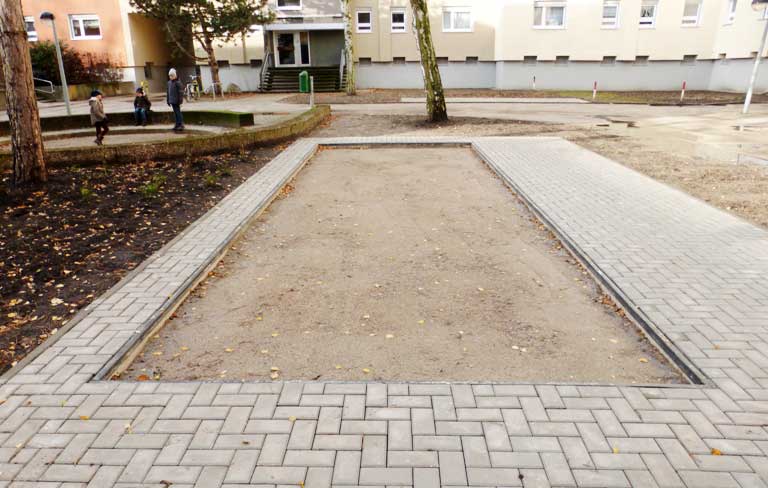 Viele Spiel- und Sportbahnen benötigen eine Einfassung. So werden Boccia-Bahnen traditionell mit Holz eingefasst. Eine saubere, langlebige und technisch anspruchsvolle Alternative bietet das Einfassungssystem Varioklipp® Spiel. Durch ein spezielles Silikonprofil stößt die Kugel bei Boccia-Bahnen nicht an den harten Rand der Einfassung, sondern wird durch eine 10 mm starke Dämpfungslippe abgefedert, ca. 50 Shore A. Lärmbelästigungen werden reduziert.